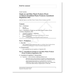 The draft Single-use and Other Plastic Products (Waste Avoidance) (Prohibited Plastic Products) Amendment Regulations 2023...